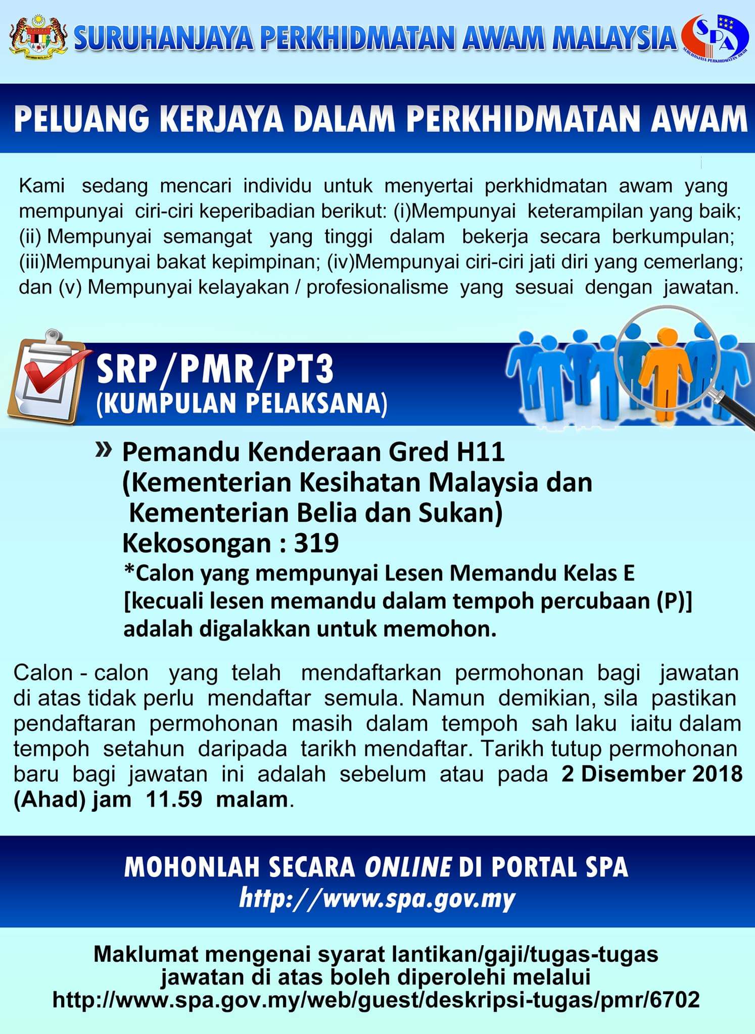 Spa Malaysia Twitterissa Peluang Kerjaya Dalam Perkhidmatan Awam Pemandu Kenderaan Gred H11 Https T Co Wkccz6wyc0 Twitter